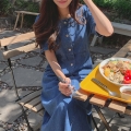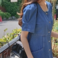 [주문폭주] 데님 셔링 원피스 / 스퀘어넥
