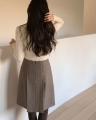 > [CRKO] 로우 헤링본 스커트 (하객룩 미디스커트 핀턱 플리츠스커트)