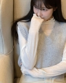 > 밸런스 프릴 폴라티 /니트후드집업/레이어드룩/하프넥